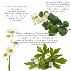 Calming and soothing Green Myrtle assists in normalizing hormonal imbalances which in turn affect the natural sebum production.