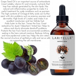 | Directions | Apply oil to scalp and hair. Massage into the scalp for a minimum of 2 minutes. Leave in for at least 30 minutes. Wrap a warm towel around the head to aid absorption of the oils. Wash out using Laritelle shampoo, followed by Laritelle conditioner. For best results, repeat at least twice a week. Directions for color treatment application: add 2-5 droppers or more (depending on the amount of color mixture used) directly to any color mixture for ultimate protection, shine, maximum hair strength and absorption of color. Directions for post-summer hair damage treatment: apply to the full length of hair to repair damage caused by the sun, and to revitalize dull, brassy, or dry hair. Leave in for at least 30 minutes. Wash out using Laritelle shampoo, followed by Laritelle conditioner. Directions for leave-in post-shampoo split ends repair: apply small amount to the tips of the hair to seal in moisture and to repair split ends. |