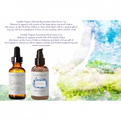 Laritelle Organic Ultimate Rejuvenation Face Serum - 1 oz Balances & supports sixth (center of the head, above eye level) chakra also known as the Third Eye Chakra or Ajna and deals with our spiritual gift of vision as well as our perspective of how we see ourselves, others and the world.