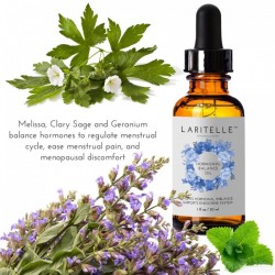 Organic Melissa, Clary Sage and Geranium balance hormones to regulate menstrual cycle, ease menstrual pain, and menopausal discomfort.